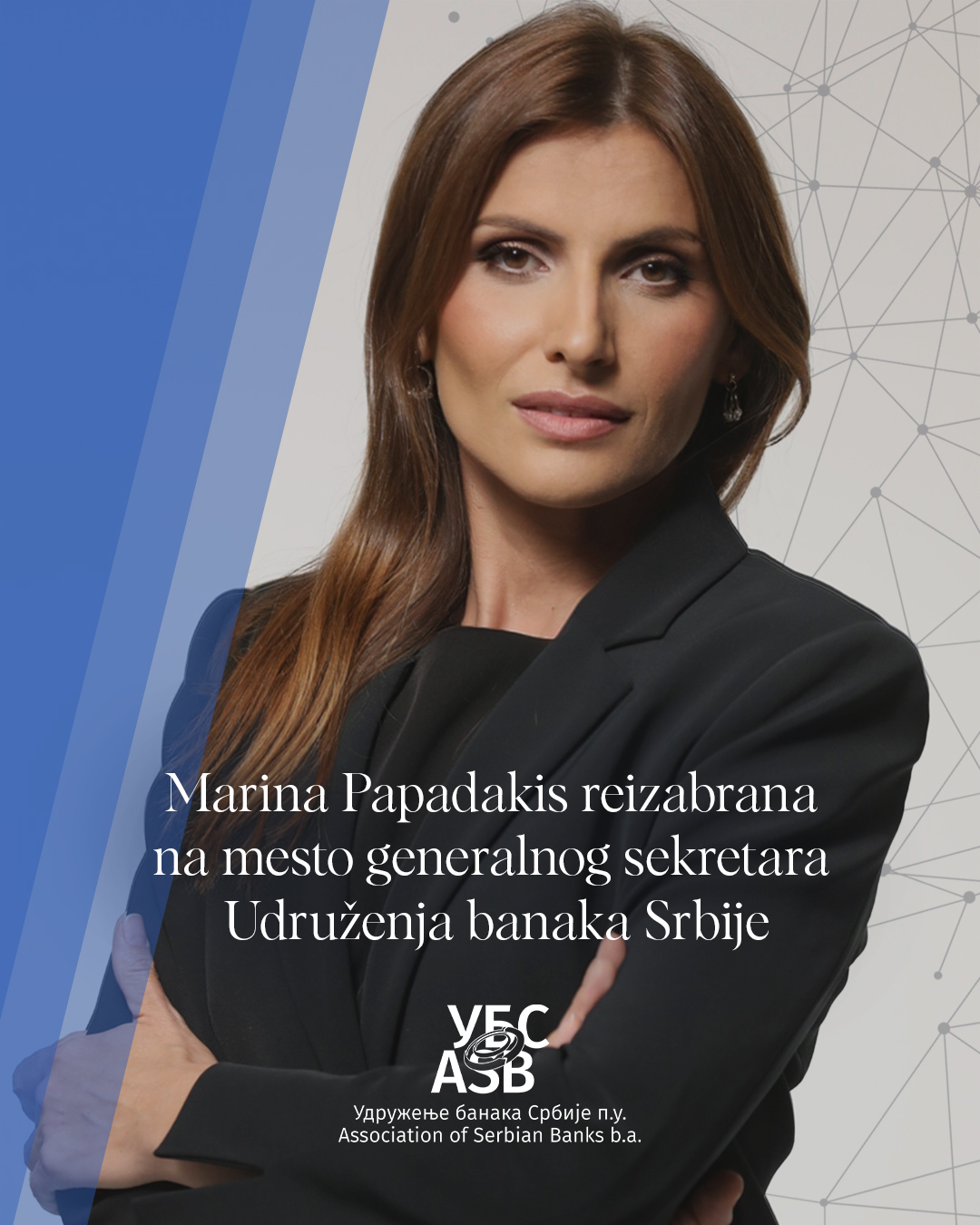 Na sednici Upravnog odbora Udruženja banaka Srbije, aktuelni generalni sekretar, Marina Papadakis, reizabrana je na mesto generalnog sekretara u drugom trogodišnjem mandatu.